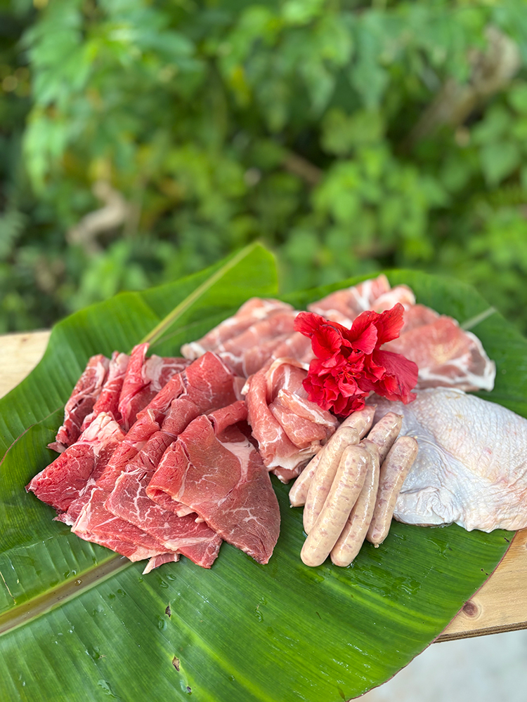 ・お肉4種(豚肉/牛肉/鶏肉/アグー豚のソーセージ)